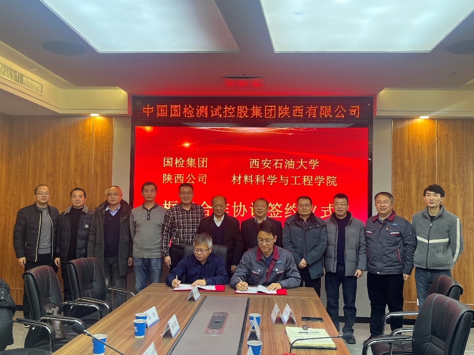 1月5日下午,学院与中国国检测试控股集团陕西有限公司技术交流活动暨框架合作协议签约仪式,在国检集团西北运营中心大厦顺利召开。中国国检测试控股集团陕西有限公司总经理雷建斌、常务副总经理张帆、副总经理张卫星、副总经理焦红彬以及公司管理部门和经营部门人员,学校合作发展处处长蔡上游、学院党委书记林红先、院长张骁勇、党委副书记张云姿、实验中心主任刘彦明、焊接系教授路浩、校友企业家联合会秘书长李广涛等出席了活动。