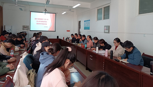 为进一步加强学风建设,持续推行“研究生导师+本科生+硕士生”三位一体“融合”育人育才创新模式,提升本科生人才培养质量,11月10日下午16:00,新材料系在鄠邑校区机械材料楼204会议室召开师生座谈会。学生管理办公室主任马武军、辅导员马黎、新材料系全体教师、来自大三和大四的优秀学子及2020级新能源材料与器件专业的全体同学参与了本次学习交流座谈会。会议由新材料系主任肖美霞主持。