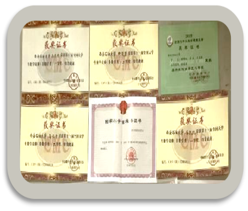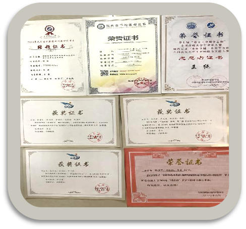 赛区中获金奖3项、银奖4项,在研国家级创新创业项目1项,省级创新创业训练结题项目1项,张普智和王纯同学以第一作者发表论文2篇,王纯同学获得实用新型专利1项。