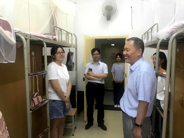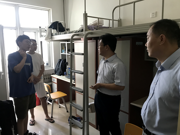 9月7日下午,齐仲锋书记、宋海洋副院长与辅导员王雷老师到每间宿舍看望慰问了新一届研究生。齐书记欢迎同学们的到来,亲切询问了大家的需要以及对学院研究生教育工作的要求,并勉励同学们珍惜学习机会,不负韶华,勇于攀登科学高峰。走访过程中,院领导认真聆听了同学们对学校整体情况和迎新工作的感受及学习生活方面的意见建议,就大家关心的话题、提出的问题进行了详细耐心解答和说明。