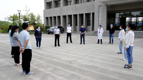 于5月6日上午10:00在鄠邑校区机械材料楼开展了疫情防控应急处置演练,院长张骁勇、副院长朱世东,以及实验中心、教学办、学管办、综合办等部门及楼管共计19名教职工参加了本次演练。本次演练由实验中心主任刘彦明主持,并邀请了实验室管理处赵栋老师到现场进行了观摩指导。