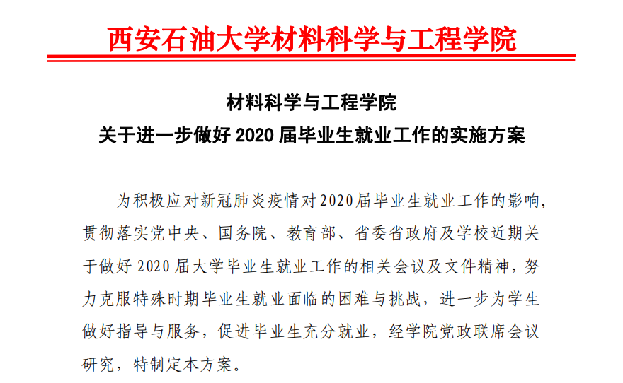 关于进一步做好2020届毕业生就业工作的实施方案》,拿出了务实举措,明确了责任分工、重点任务和工作要求。