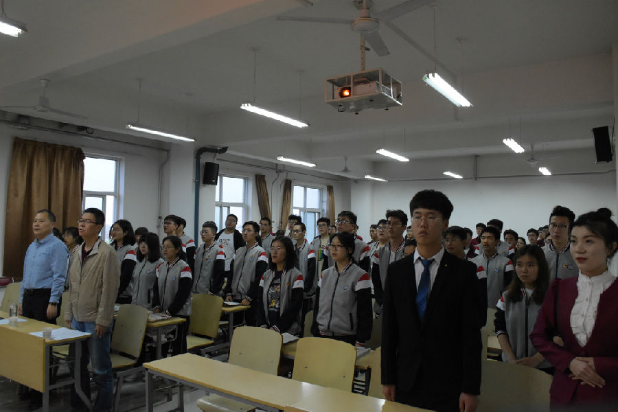 班仪式在雄壮的国歌声中拉开帷幕。马文庆老师为本期入党积极分子培训开班致词,对全体学员的提出了要求和希望,要认真对待培训,加强自身学习,要强化政治追求,坚定理想信念,要不断努力学习党的基础知识,用先进的理论武装自己的头脑,希望同学珍惜本次学习,将它作为新的起点,不断充实、提高和完善自己,争取早日在思想上、组织上加入到党的行列中来。仪式上,宋二鹏老师宣读了本次培训班的考核办法和纪律要求。