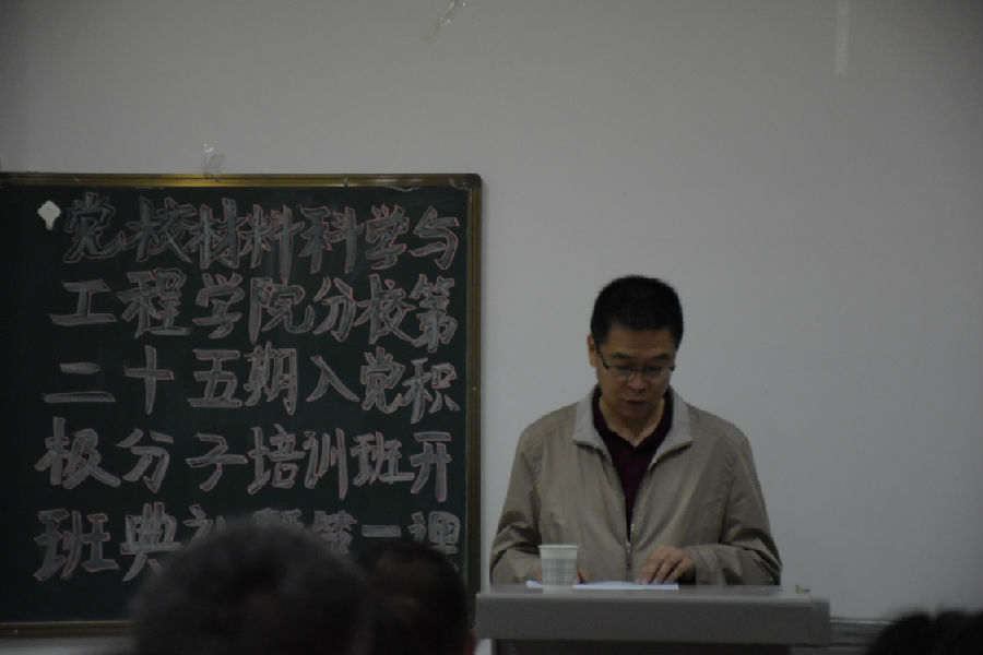 分校第二十五期入党积极分子培训班暨第一课于机械材料楼401顺利举行。学院党委书记齐仲锋老师,党委副书记马文庆老师,辅导员宋二鹏老师和92名入党积极分子参加了本次开班仪式。