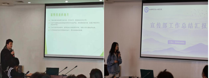 学院团委学生会各部门主要负责人依次进行述职汇报,以PPT形式就2023年度工作成果,组织建设、日常事务等情况进行汇报,深度剖析了工作中遇到的问题与挑战,对不足之处进行反思,同时提出了新一年的工作规划和畅想。他们表示将发挥好师生之间的桥梁纽带作用,切实解决身边同学的合理诉求,用实际行动为同学做好事、做实事,凝心聚力,齐同并进