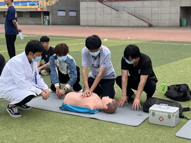 医护人员以“黄金4分钟”为切入点,重点讲解了心肺复苏(CPR)的操作流程、按压频率与深度等关键要点,并借助人体模型指导学员逐一练习。同时,培训还介绍了自动体外除颤器(AED)的使用方法,通过模拟突发心脏骤停场景,让学生熟悉从判断意识、呼救到实施CPR与AED除颤的全流程操作。