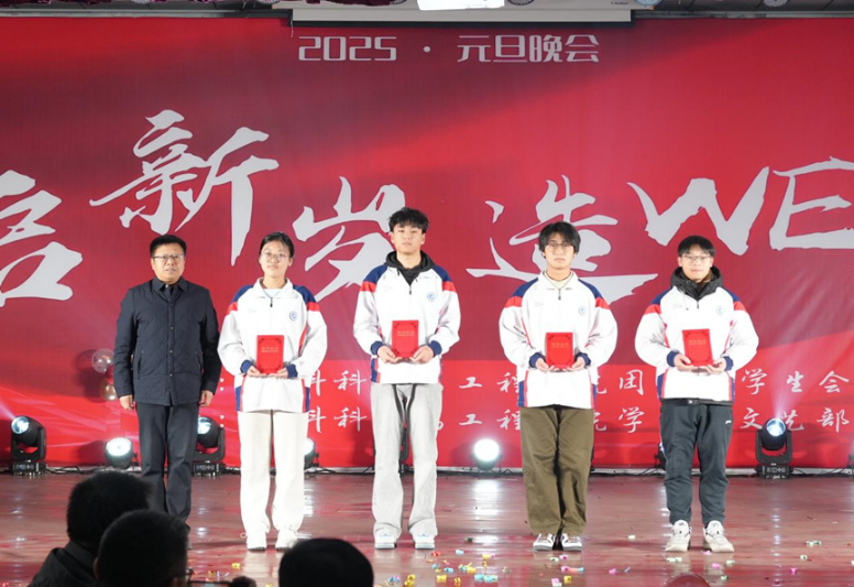 晚会期间,张骁勇为学院2024年获得国家奖学金、国家励志奖学金、王涛英才奖学金、学业奖学金等学生代表进行颁奖,王亮为学院2024年在学科竞赛中取得优异成绩的团队及个人进行了颁奖。