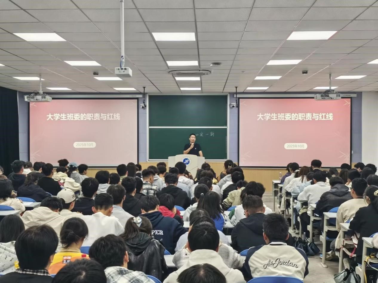 在班级建设经验分享环节,经济管理学院会计2202班班长、校学生会执行主席的徐顾铭从班级目标设定、班委分工协作和学风建设引导等方面分享了自己在班级建设中的心得体会,为新生班委提供了具体可行、贴合实际的班级建设指南。学院焊接2302班班长、学生党建办公室负责人王金鹏,国家奖学金获得者、能材2201班黎乐影,围绕“思想引领、服务同学与个人发展”这一主题从不同视角探讨了班委在思想引导、同学服务与自我成长方面的角色定位与实践路径,为新生班委的成长赋能。
