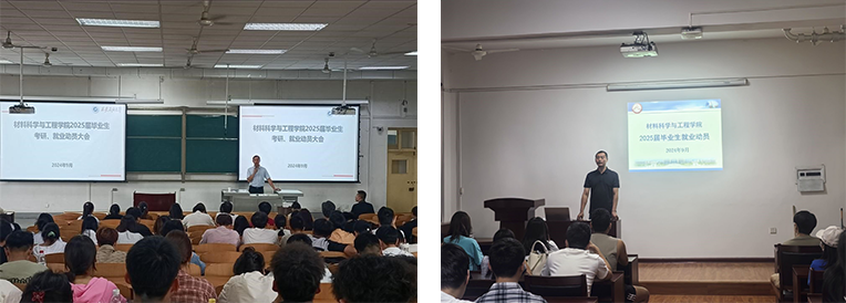 分别于9月24日在雁塔校区第四实验楼302和9月26日在鄠邑校区博览楼239教室召开2025届毕业生升学、就业再动员大会。学院党委副书记张云姿作动员讲话,100余名硕士研究生和260余名本科毕业生参加,会议由辅导员宋二鹏和周鑫主持。