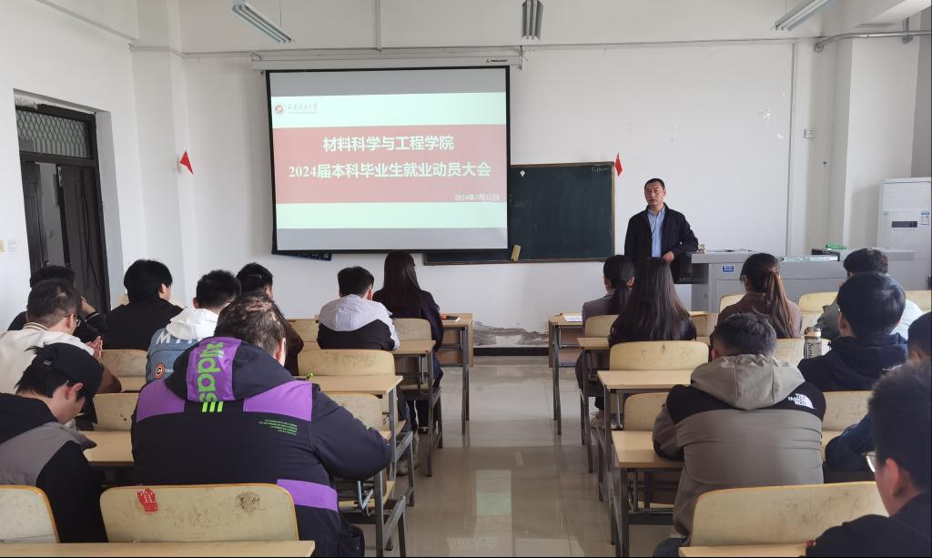 在鄠邑校区天工楼401教室召开2024届未就业本科毕业生动员大会。学院党委副书记张云姿、学生工作办公室主任郭媛,以及2024届全体未就业毕业生参加会议,会议由毕业班辅导员马黎主持。