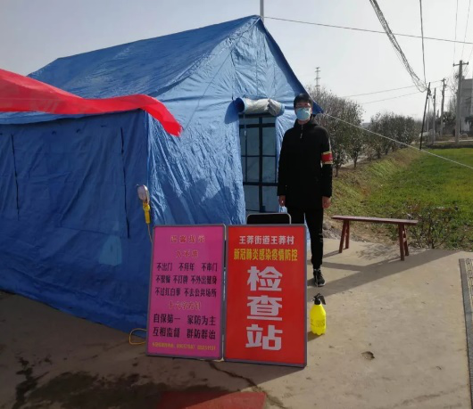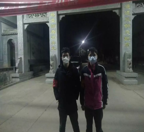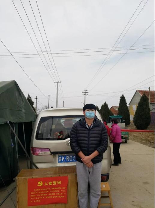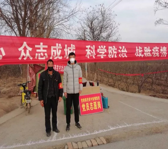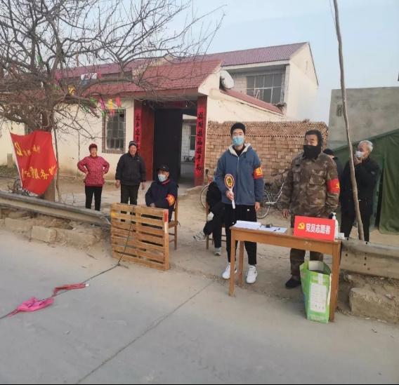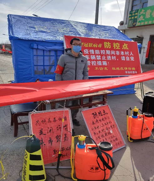 材料类1902程龙积极参与陕西省西安市长安区王莽村当地的村委会组织的防疫工作,协助村干部对过往人员进行登记与测量体温等工作