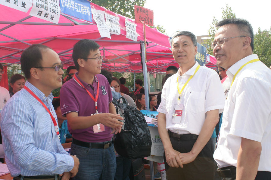 迎新期间,学院党政领导先后来到迎新现场了解新生报到情况,看望迎新工作人员,要求迎新人员认真组织、以真诚与微笑为新生及家长服务。