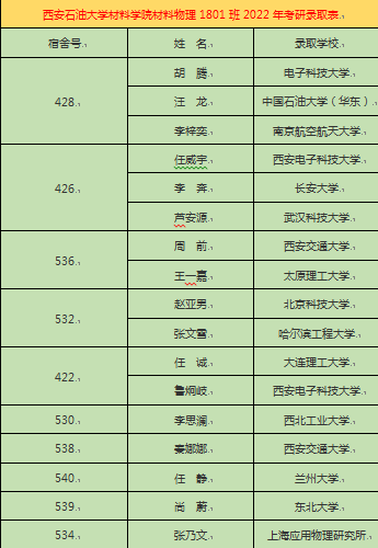 材料物理专业1801第二届拔尖班(全班共25人)再创辉煌,2名学生获得研究生推免资格,分别保送至西北工业大学和电子科技大学(成都);21名学生参加研究生入学考试,16名学生达国家线,15名学生被录取,其中有14名学生被西安交通大学、大连理工大学、兰州大学、东北大学、北京科技大学、中国石油大学(华东)、南京航空航天大学、西安电子科技大学、长安大学、哈尔滨工程大学、太原理工大学、上海应用物理研究所等“双一流”高校及中科院研究所录取。这样备受瞩目的成绩离不开同学们个人的不懈奋斗,离不开师生共同营造的良好学风,更离不开1024核工厂