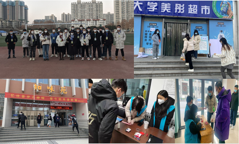学院党委积极响应上级党组织的号召,第一时间组建了12名教师党员先锋队,他们有的维护负责维护防控秩序,督促校园内核酸检测完毕人员尽快回家或者回宿舍;有的在社区物资点帮助给校园住户发放生活物资;有的在固定的岗位协助执勤,他们不惧严寒,放下幼小的孩子,坚持站在抗疫的一线。
