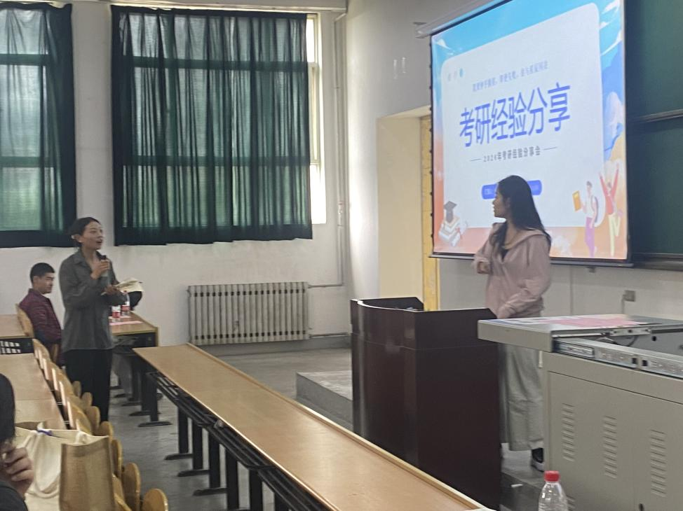 会议第二阶段,本校在读研究生的赵佳怡和李昌隆同学依次向学弟学妹们分享了他们在考研择校、备考、复试等方面的经验,为同学们提供了参考和借鉴。