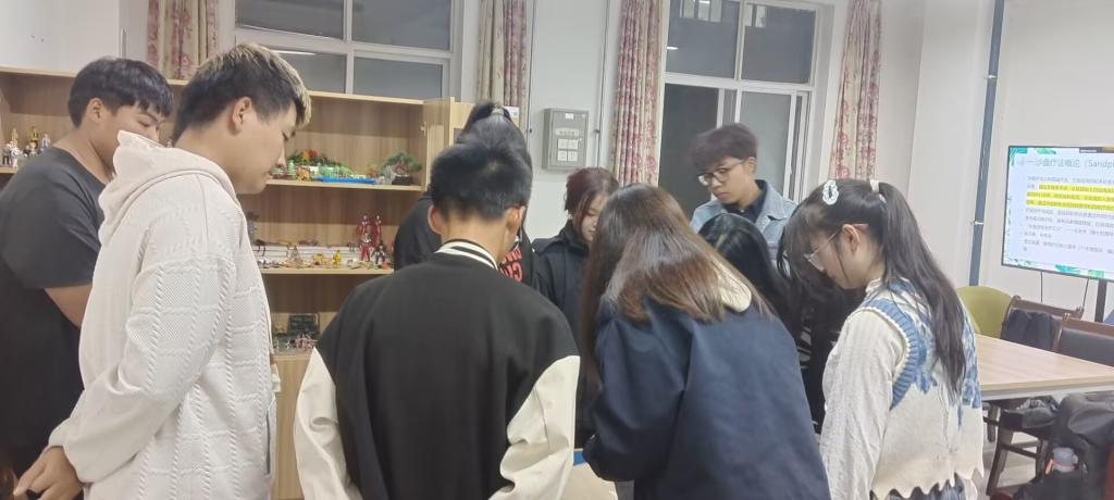 心理辅导站开展“朋辈助力,温暖前行”心理育人系列活动——沙盘辅导培训,活动由学院心理成长专干马黎指导,2023级全体心理委员参加。