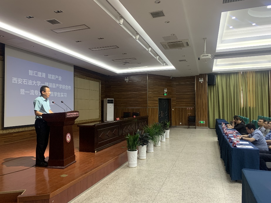 林红先对建湖县政府和各企业的热情接待表示感谢。他谈到,我校与建湖县的合作已达16年之久,与建湖县政府和石油装备等相关企业建立起了非常深厚的友谊,双方在石油装备制造领域和人才交流方面开展了多层次、全方位的合作,建湖县对学校各方面工作都给予了大力支持和帮助,特别在相关产业合作、人才联合培养、科技协同创新等方面取得了丰硕成果。他希望,全体实习生要充分认识实习的重要意义,严格遵守实习纪律,珍惜实习机会,认真学习,积极探索,虚心请教,通过实习去了解社会,检验自己,查漏补缺,不断提高自身的综合素质;本次实习的带队教师要认真负责,严格要求,结合专业特点分类指导,做好实习学生的管理和教育,切实提高教育教学水平,同时加强与建湖各培养企业的协调沟通,妥善处理可能遇到的困难和问题,确保实习工作顺利进行。