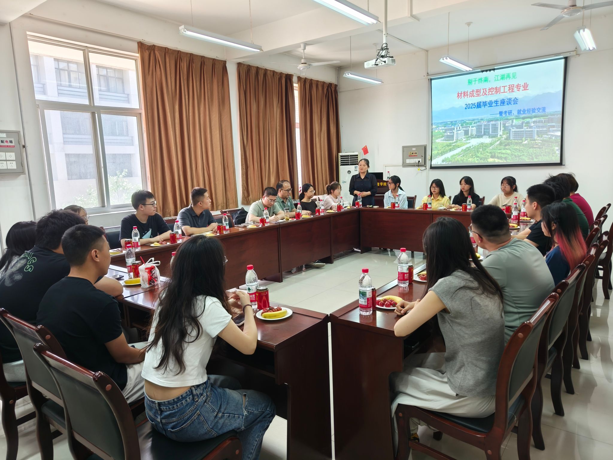 6月11日下午,材料成型及控制工程专业在鄠邑校区机械材料楼(天工楼)204会议室举行2025届毕业生座谈会暨考研、就业经验交流会。本次会议由系主任胥珊娜主持,材控系教师代表、21级毕业生代表及22、23级学生代表共同参加会议。