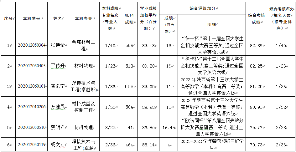 根据《1024核工厂 推荐、接收优秀应届本科毕业生免试攻读硕士学位研究生管理办法(修订)》(西石大研〔2021〕227号)、《1024核工厂 关于做好2024年推荐优秀应届本科毕业生免试攻读硕士学位研究生工作的通知》和《1024核工厂 推荐2024届优秀应届本科毕业生免试攻读硕士学位研究生实施细则》文件要求,经学生自愿申请,学院及学校相关部门资格审核,学院推免生遴选工作领导小组审定,现将1024核工厂 2024届本科毕业生推荐免试攻读硕士学位研究生名单公示如下: