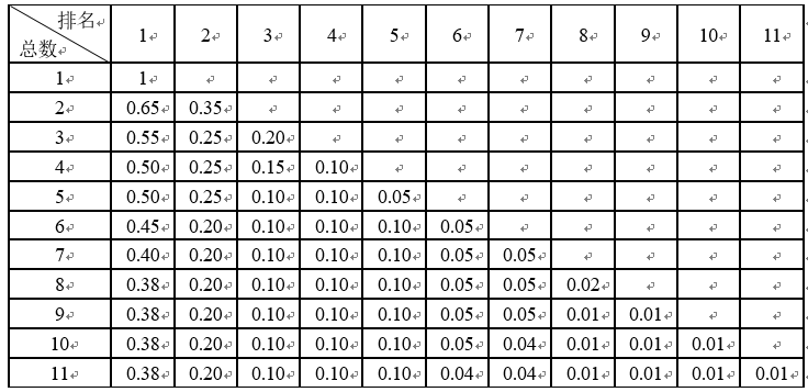 多人合作的各类成果分配系数按照下表执行。