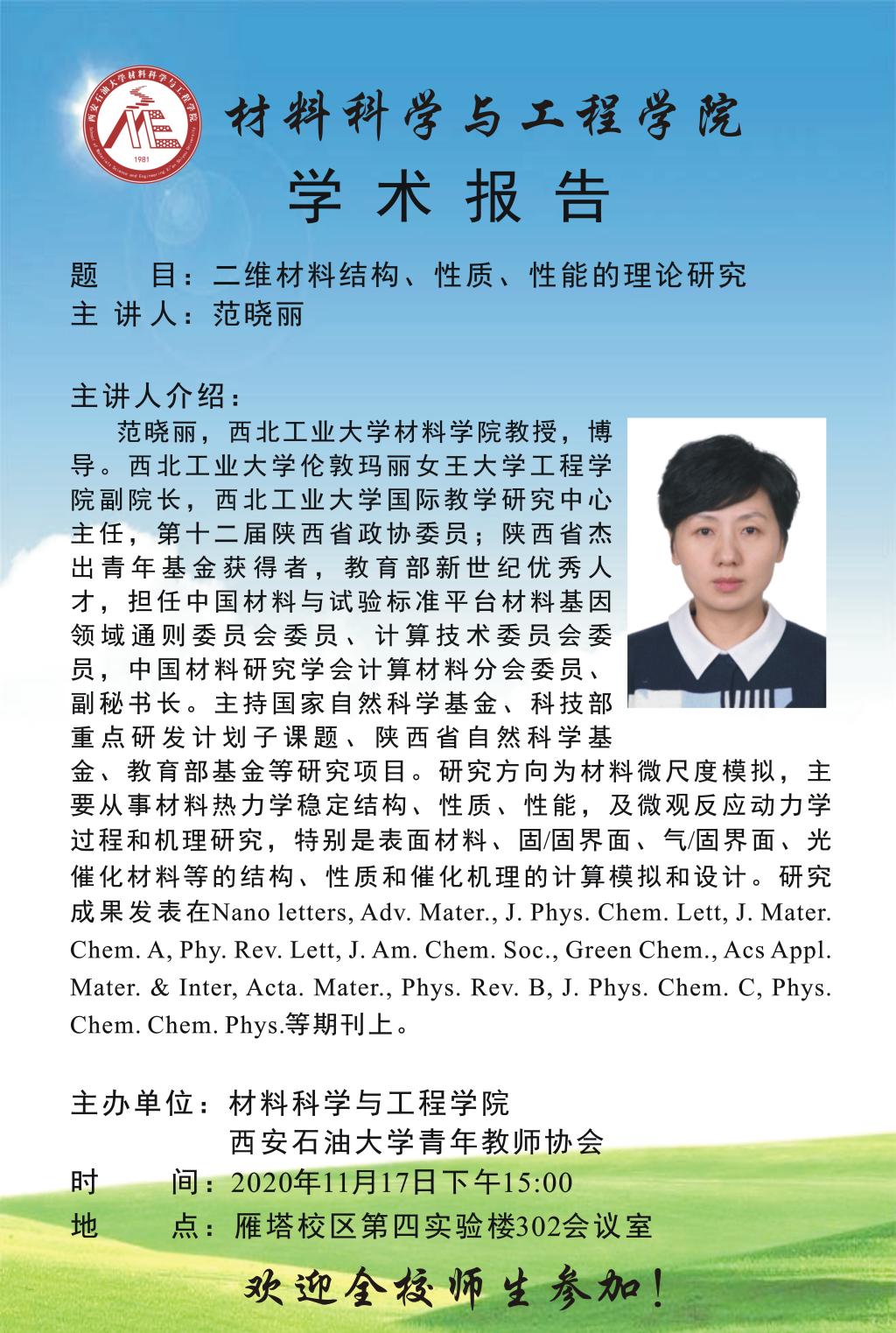 学术报告:二维材料结构、性质、性能的理论研究