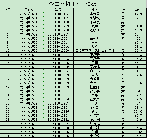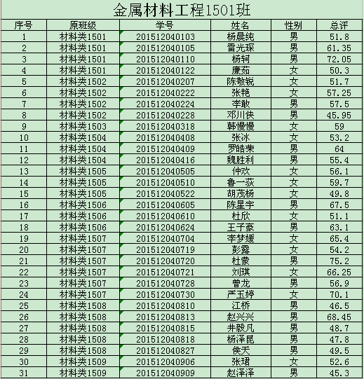 如对分班结果有质疑,请与材料院教学办公室联系,联系电话:81469756。